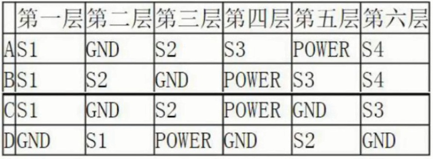 D種情況,在六層板中,性能雖優于前三種,但布線層少于前兩種。此種情況多在背板中使用。